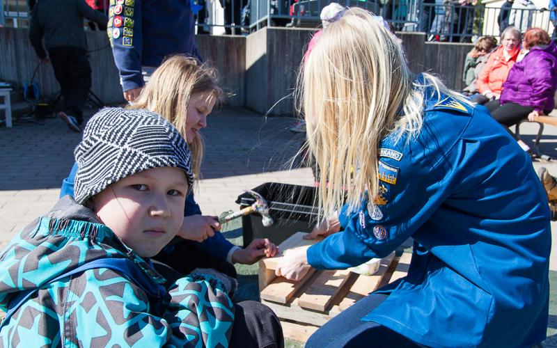 Lions Club Parkanon vapputapahtuma Parkanon torilla 1.5.2017. Lippukunta oli järjestämässä tapahtumaa Punainen Sulka -keräyksen myötä.